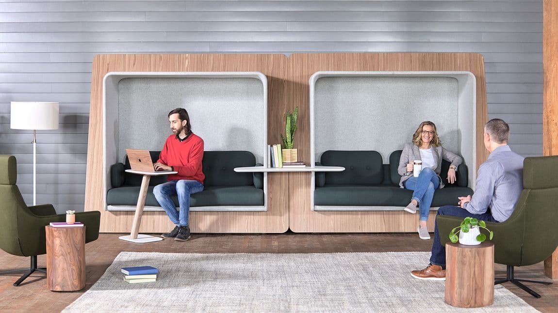 Every building has those spaces that people are drawn to for escape. Some are intentional through architecture, while others are more natural based on flow and activity or the lack of it. Nooks, alcoves, corridors, and stairs often present an escape and that's exactly what this Acoustic Lounge Furniture is designed to achieve. Outfitted to feel like it was built into your space, it solves the need to take back our own attention or give full attention to others. Similar to individuals, small groups need to escape as well as align and set pace. Seek shelter from the norm, meet our newest Acoustic Furniture design. It’s offered in single, double or ganged units and with or without the veneer or laminate surround shroud.