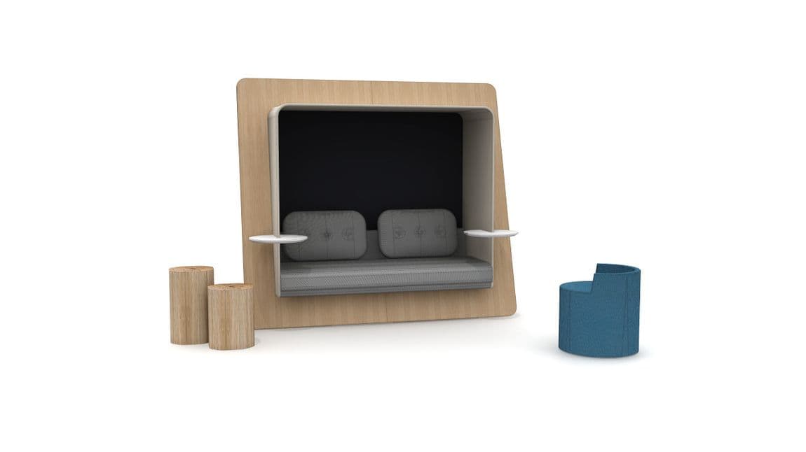 Every building has those spaces that people are drawn to for escape. Some are intentional through architecture, while others are more natural based on flow and activity or the lack of it. Nooks, alcoves, corridors, and stairs often present an escape and that's exactly what this Acoustic Lounge Furniture is designed to achieve. Outfitted to feel like it was built into your space, it solves the need to take back our own attention or give full attention to others. Similar to individuals, small groups need to escape as well as align and set pace. Seek shelter from the norm, meet our newest Acoustic Furniture design. It’s offered in single, double or ganged units and with or without the veneer or laminate surround shroud.