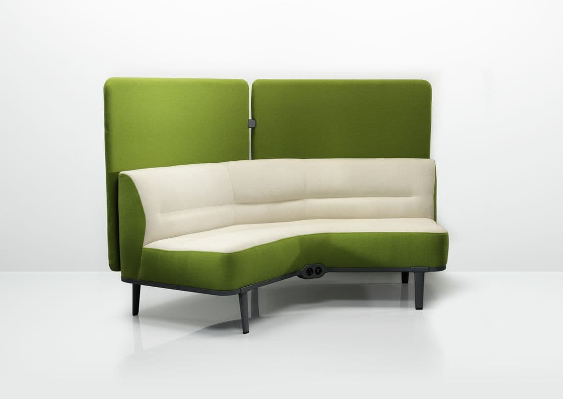 This high performing modular acoustic lounge seating design can be configured as dedicated personal or huddle areas in open-plan spaces, touchdown spaces outside in-demand project rooms or as collaborative lounge seating areas. This stylish acoustic lounge seating family includes sofas, ottomans, screens and accessories, each linking seamlessly to each other to create a combination of rectilinear and curvilinear forms for beautiful yet defined spaces. Power Outlets can be integrated into the seating to charge mobile devices and laptops. Numerous fabric options and colors are available including acoustic felt.