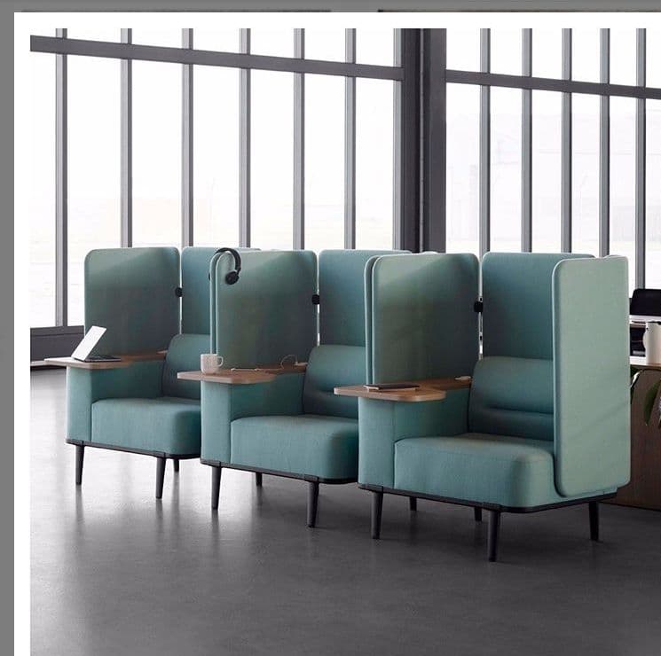 This high performing modular acoustic lounge seating design can be configured as dedicated personal or huddle areas in open-plan spaces, touchdown spaces outside in-demand project rooms or as collaborative lounge seating areas. This stylish acoustic lounge seating family includes sofas, ottomans, screens and accessories, each linking seamlessly to each other to create a combination of rectilinear and curvilinear forms for beautiful yet defined spaces. Power Outlets can be integrated into the seating to charge mobile devices and laptops. Numerous fabric options and colors are available including acoustic felt.