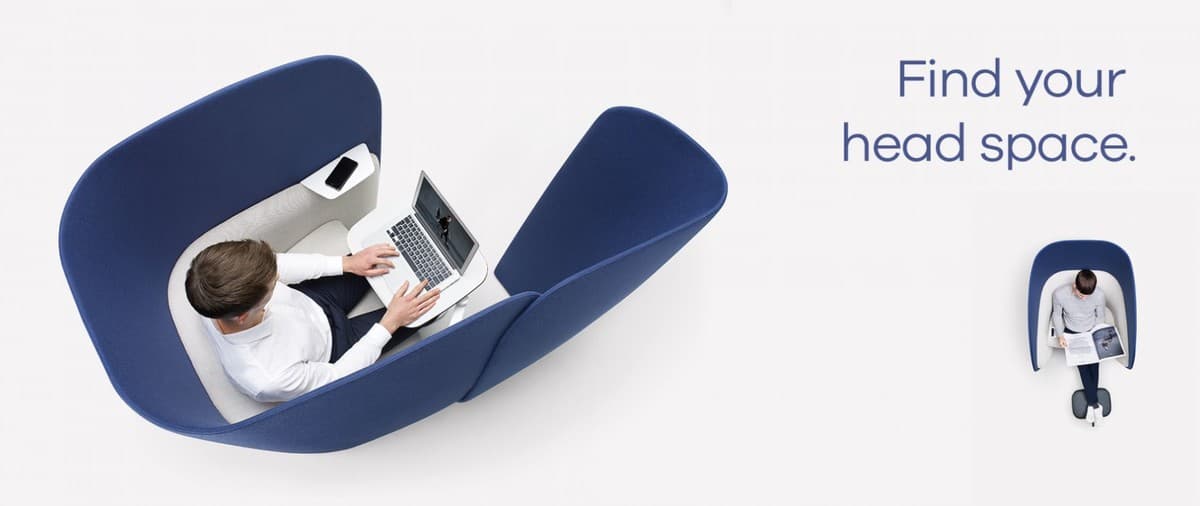 This acoustic social distancing furniture solution is a personal workspace with an acoustic privacy screen and multi-positional writing tablet for quiet and private working. Arm shelves and power options provide additional work surfaces and connectivity. Dual density foams support the user and there is storage underneath the seat area. An upholstered return screen can be added to the front of the unit to further enhance user privacy.