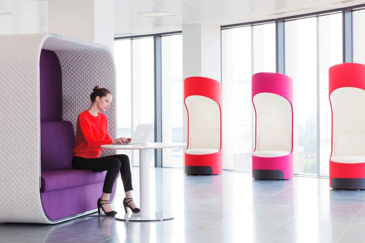 Based on one simple unit, this acoustic privacy pod can be used for team meetings, collaborative tasks or as a base for the day. Comfortable and ergonomically sound, it creates the ideal meeting space for informal environments. The high, social distancing-friendly upholstered structure absorbs ambient background noise providing complete privacy from the surrounding environment without the need for interior sub structures. Delivered on castors and having the ability to fit through a standard size single doorway, it lends itself to being easily relocated and reconfigured.