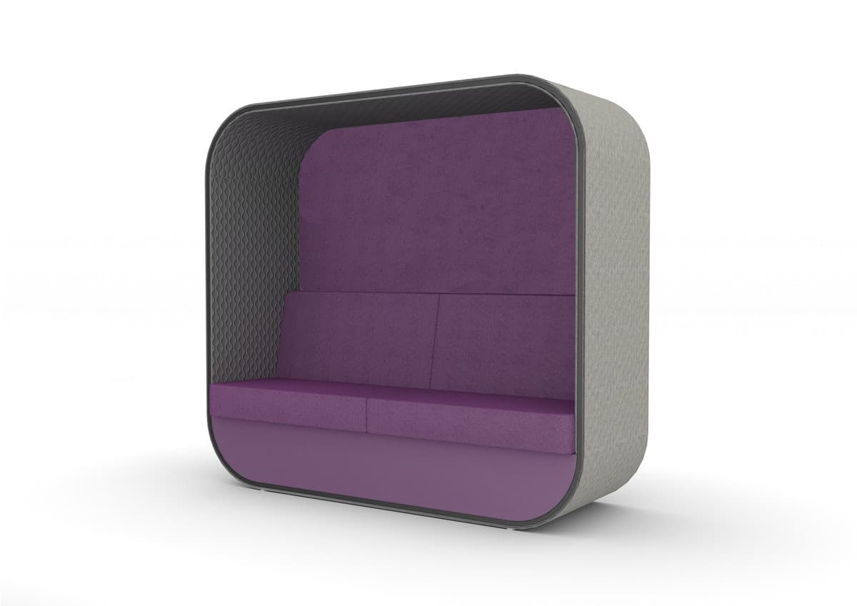 Based on one simple unit, this acoustic privacy pod can be used for team meetings, collaborative tasks or as a base for the day. Comfortable and ergonomically sound, it creates the ideal meeting space for informal environments. The high, social distancing-friendly upholstered structure absorbs ambient background noise providing complete privacy from the surrounding environment without the need for interior sub structures. Delivered on castors and having the ability to fit through a standard size single doorway, it lends itself to being easily relocated and reconfigured.