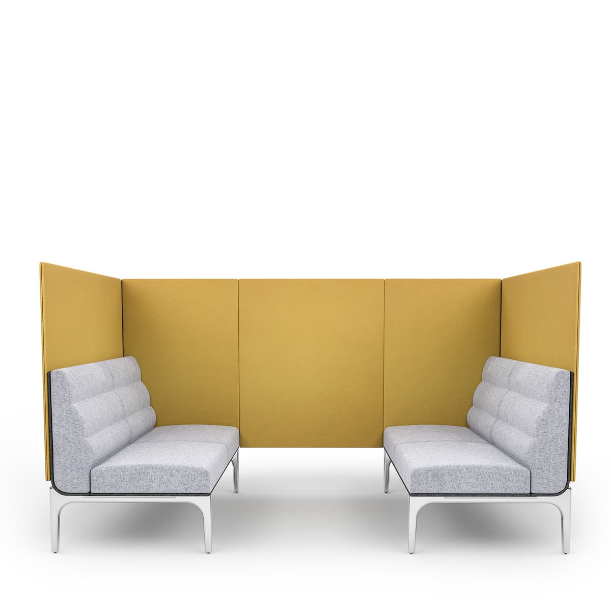 Combining the comfort of a lounge chair with partitions for privacy, this Acoustic Furniture design provides a welcome and quiet space to sit, work and focus. Seating and panel elements can be configured together to create stand-alone modules, clusters of single-user spaces, or expand into multi-user settings for various meeting requirements. Wherever personal or private space is needed within open environments, this Acoustic Lounge Furniture series has it covered.