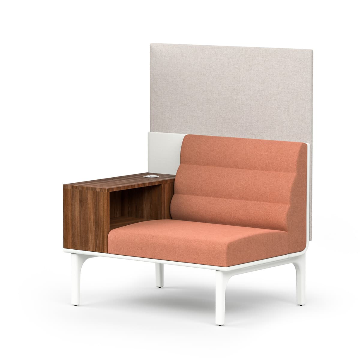 Combining the comfort of a lounge chair with partitions for privacy, this Acoustic Furniture design provides a welcome and quiet space to sit, work and focus. Seating and panel elements can be configured together to create stand-alone modules, clusters of single-user spaces, or expand into multi-user settings for various meeting requirements. Wherever personal or private space is needed within open environments, this Acoustic Lounge Furniture series has it covered.