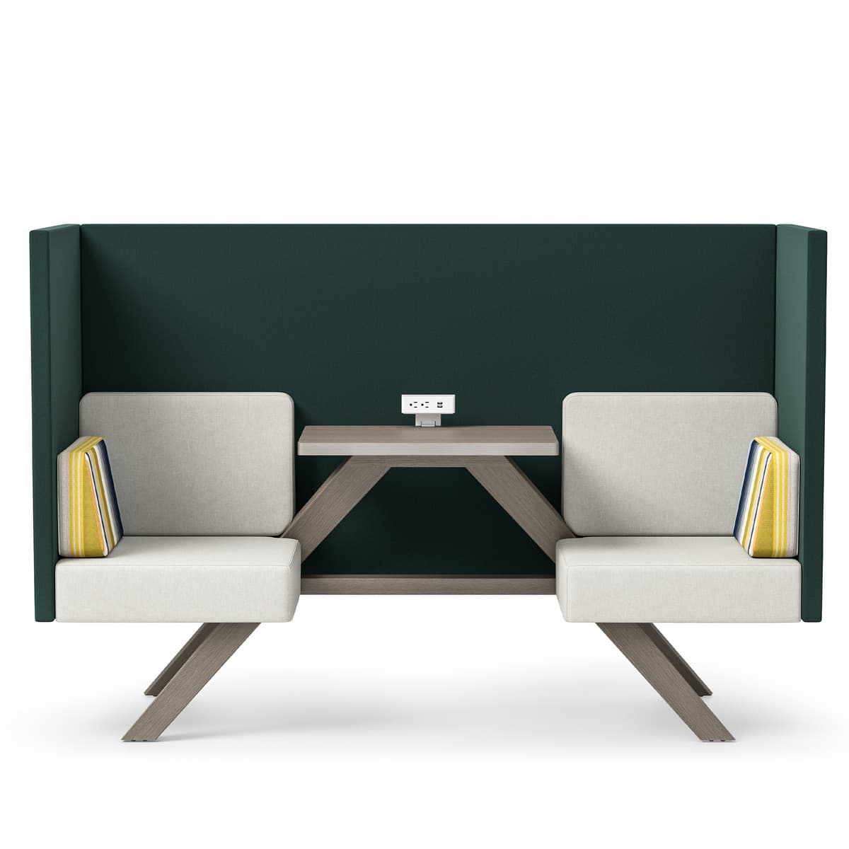 • Two-seat bench booths, two-seat lounge booths and single lounge models available with varying back and side panel options.