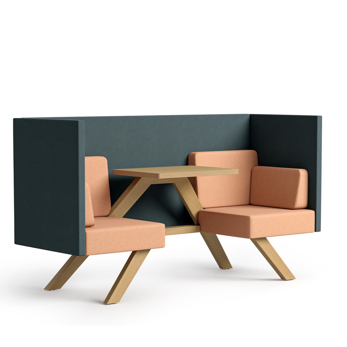 • Two-seat bench booths, two-seat lounge booths and single lounge models available with varying back and side panel options.