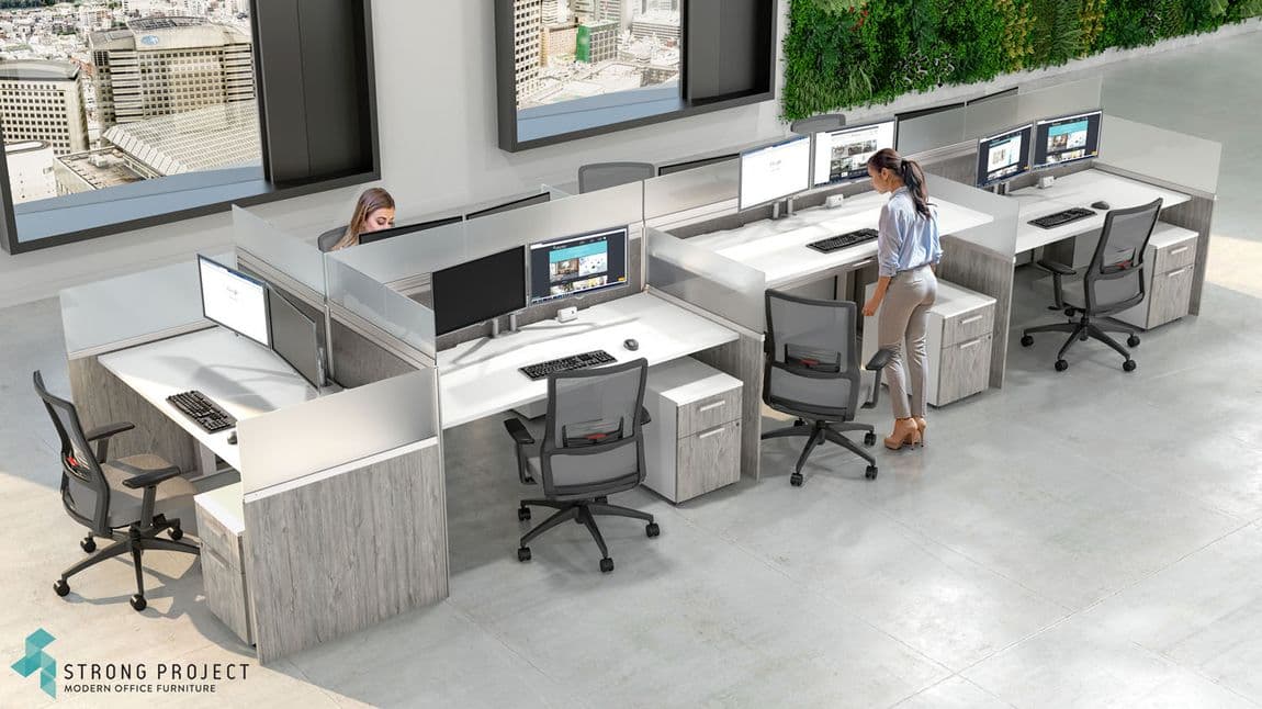 Add a touch of Modernism to your call center along with the health benefits of Height Adjustable Desks with our Modern Call Center Cubicles with Stand Up Office Desks! Ideal for integrating Team Leaders and Managers with their Call Center, Customer Service, Telemarketing or Sales Teams in open plan workstations.