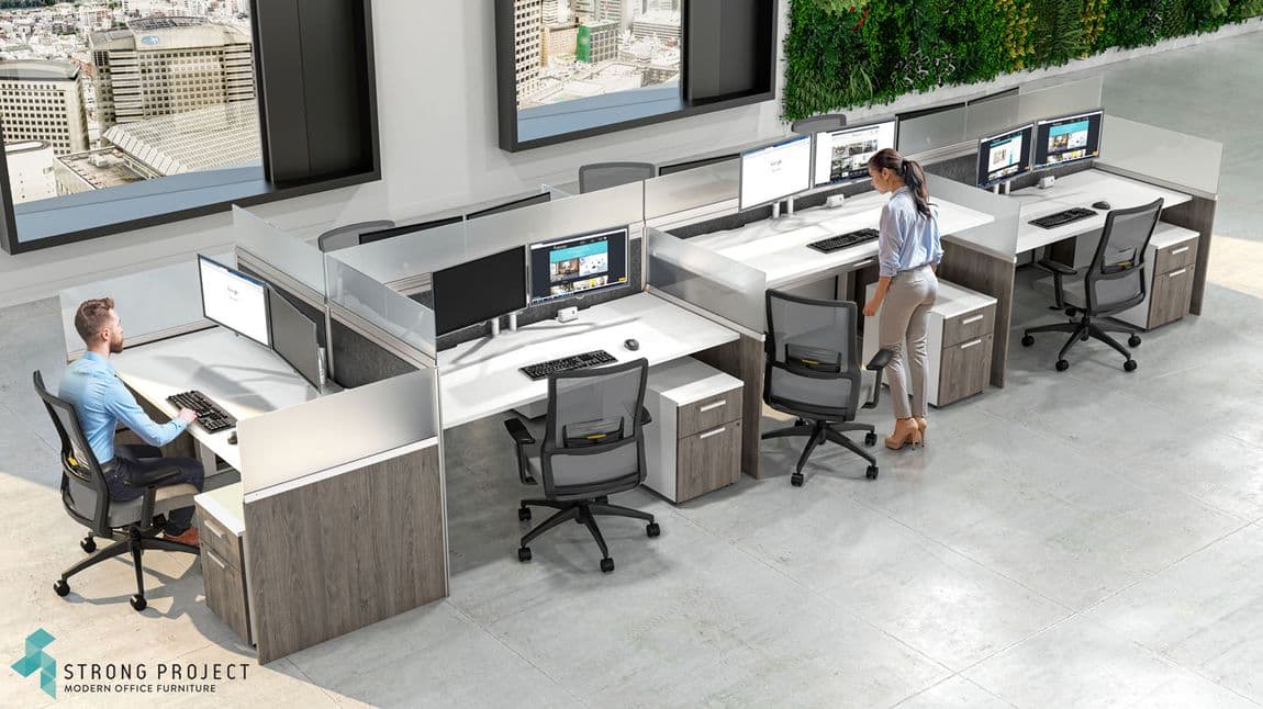 Add a touch of Modernism to your call center along with the health benefits of Height Adjustable Desks with our Modern Call Center Cubicles with Stand Up Office Desks! Ideal for integrating Team Leaders and Managers with their Call Center, Customer Service, Telemarketing or Sales Teams in open plan workstations.