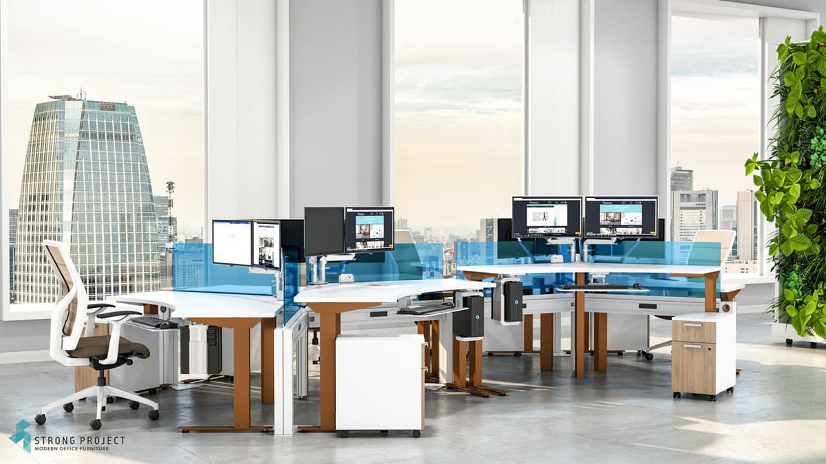 As a higher-design alternative to the boring sit-stand imported desks that have flooded the marketplace, we offer custom color applications to our Made In The USA height-adjustable desk legs and power beams which will allow you to create sit-stand open office workstation designs that are in line with your branding colors, corporate culture and the design vibe that you want for your business. In addition to numerous color options, our sit-stand workstations can be fully loaded with cutting edge ergonomic accessories such as Single or Dual Monitor Arms, Adjustable Keyboard Trays, Desk-Mounted CPU Holders and Desktop Power/USB Chargers.