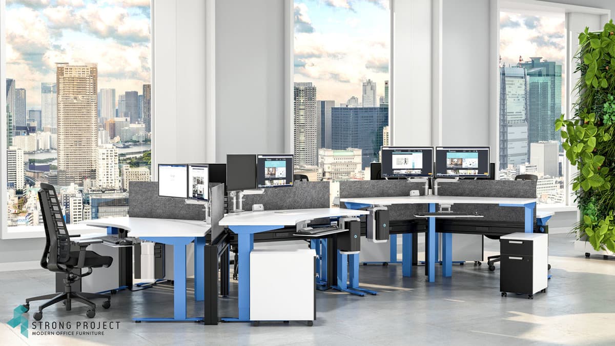 As a higher-design alternative to the boring sit-stand imported desks that have flooded the marketplace, we offer custom color applications to our Made In The USA height-adjustable desk legs and power beams which will allow you to create sit-stand open office workstation designs that are in line with your branding colors, corporate culture and the design vibe that you want for your business. In addition to numerous color options, our sit-stand workstations can be fully loaded with cutting edge ergonomic accessories such as Single or Dual Monitor Arms, Adjustable Keyboard Trays, Desk-Mounted CPU Holders and Desktop Power/USB Chargers.