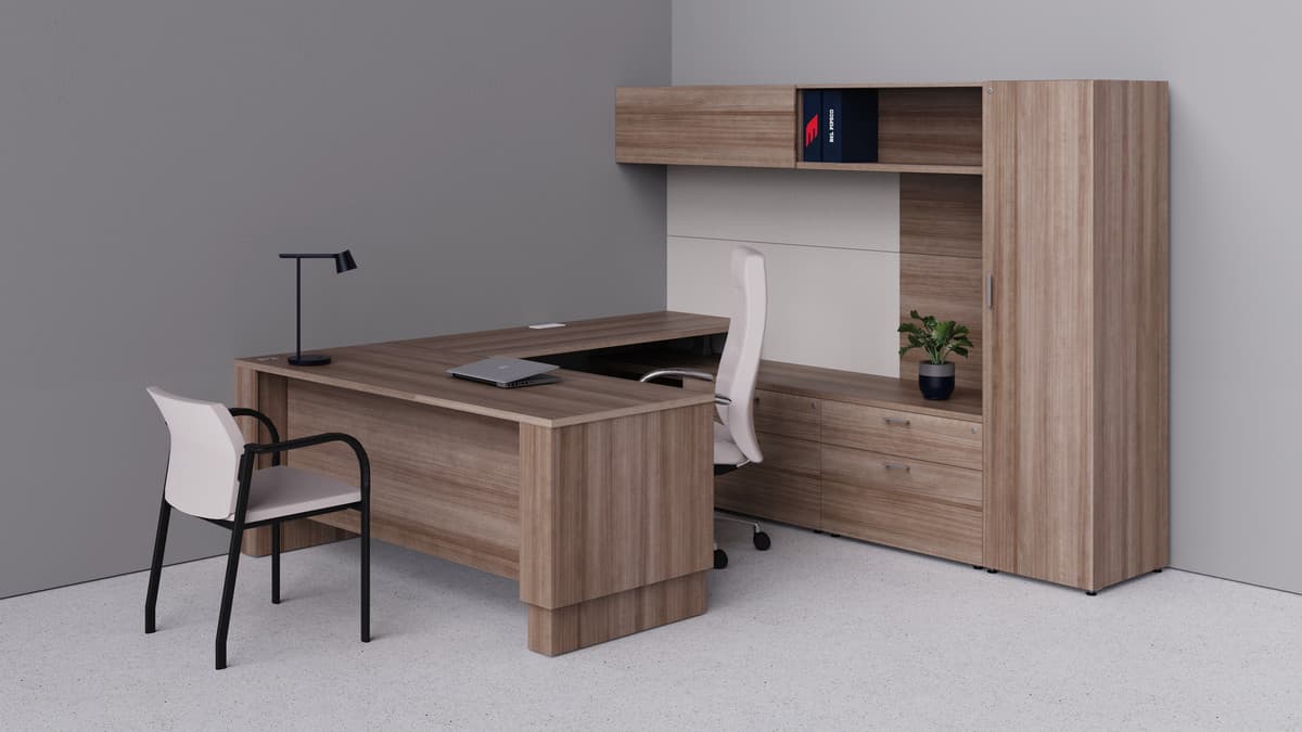 This Height Adjustable Desk and Storage series of Private Office Furniture delivers a super-smart look at an affordable price. Always conceived and created in North America, this transitional style collection includes our coveted laminate-surface collection, proprietary designs in crafted aluminum accents and unique integration of textile components.