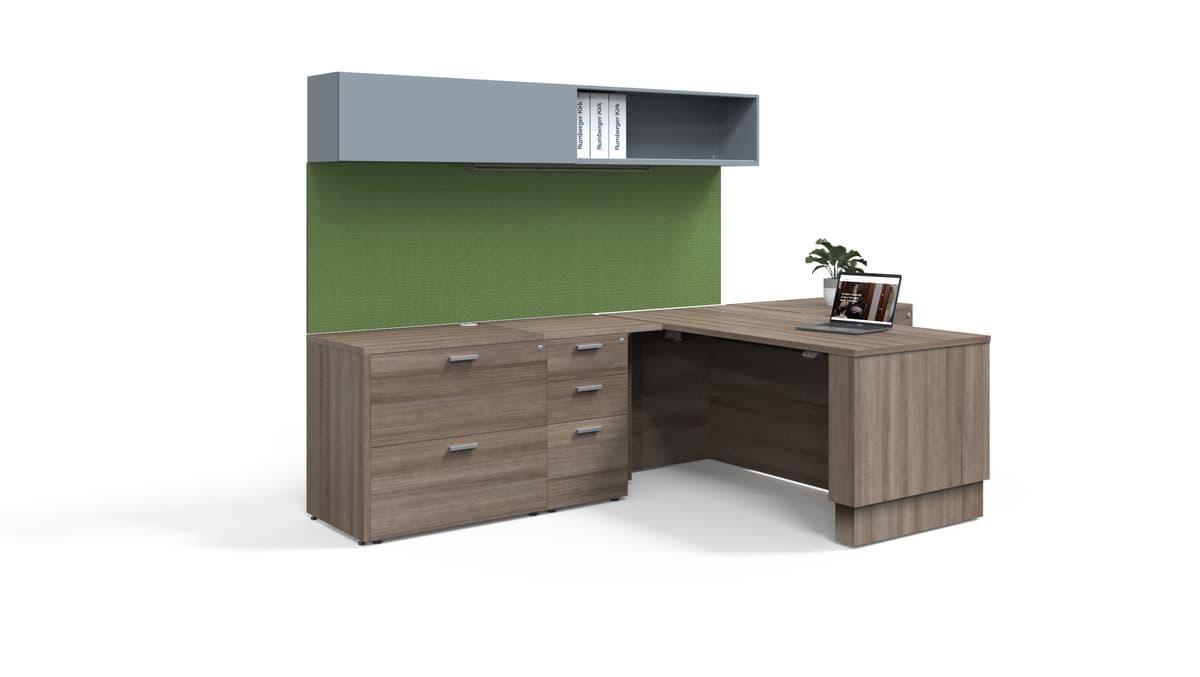 This Height Adjustable Desk and Storage series of Private Office Furniture delivers a super-smart look at an affordable price. Always conceived and created in North America, this transitional style collection includes our coveted laminate-surface collection, proprietary designs in crafted aluminum accents and unique integration of textile components.