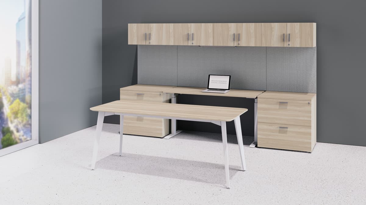 This Height Adjustable Desk and Storage series of Private Office Furniture delivers a super-smart look at an affordable price. Always conceived and created in North America, this transitional style collection includes our coveted laminate-surface collection, proprietary designs in crafted aluminum accents and unique integration of textile components.