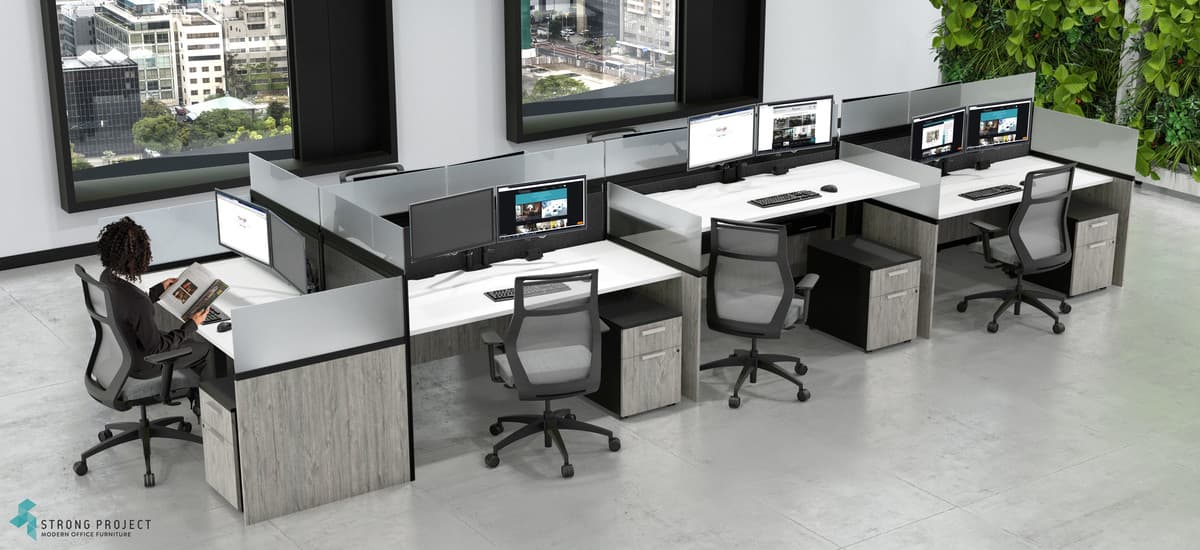 Add a touch of Modernism to your call center along with the health benefits of Height Adjustable Desks with our Modern Call Center Cubicles with Stand Up Office Desks! Ideal for integrating Team Leaders and Managers with their Call Center, Customer Service, Telemarketing or Sales Teams in open plan workstations.