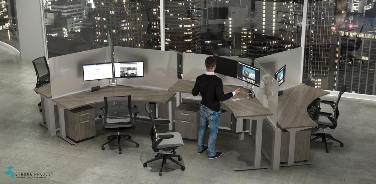 As a higher-design alternative to the boring sit-stand imported desks that have flooded the marketplace, we offer custom color applications to our Made In The USA height-adjustable desk legs and power beams which will allow you to create sit-stand open office workstation designs that are in line with your branding colors, corporate culture and the design vibe that you want for your business. In addition to numerous color options, our sit-stand workstations can be fully loaded with cutting edge ergonomic accessories such as Single or Dual Monitor Arms, Adjustable Keyboard Trays, Desk-Mounted CPU Holders and Desktop Power/USB Chargers.