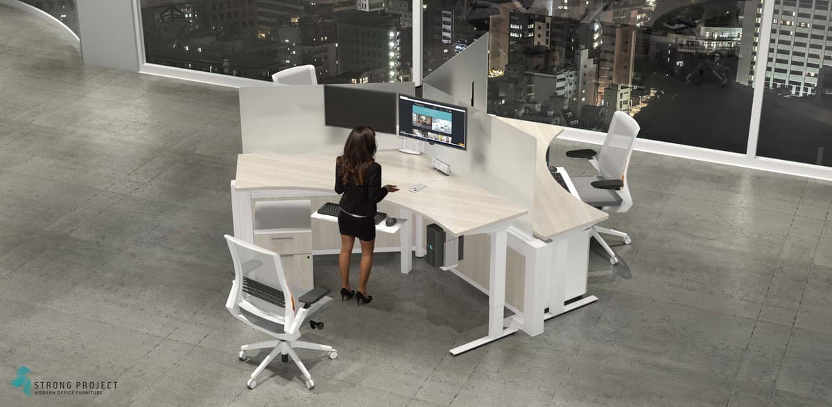 As a higher-design alternative to the boring sit-stand imported desks that have flooded the marketplace, we offer custom color applications to our Made In The USA height-adjustable desk legs and power beams which will allow you to create sit-stand open office workstation designs that are in line with your branding colors, corporate culture and the design vibe that you want for your business. In addition to numerous color options, our sit-stand workstations can be fully loaded with cutting edge ergonomic accessories such as Single or Dual Monitor Arms, Adjustable Keyboard Trays, Desk-Mounted CPU Holders and Desktop Power/USB Chargers.