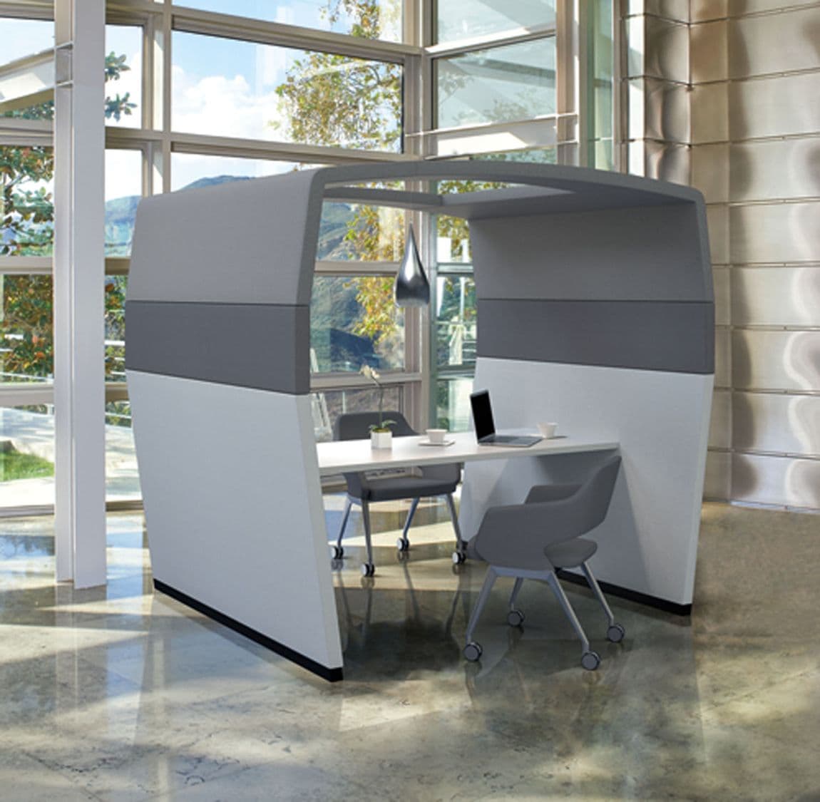 Taking its cue from the shared society of today, these Office Privacy Pods are all about bringing people together. Designed to function equally well in existing or new spaces, these open to semi-private meeting enclaves can be positioned anywhere and require no elaborate construction to create a custom built-in feel. Supremely comfortable and exceptionally versatile, these acoustic Meeting Pods are the essential collective for communicating, working and inspiring one another to achieve more.