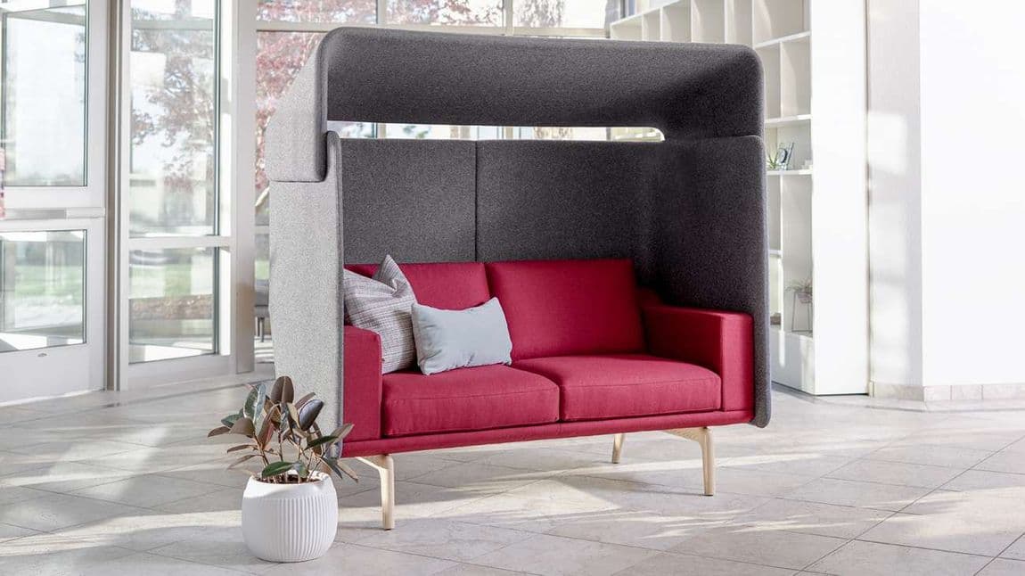 Each detail of the design works together to create a pocket of people to gather or spend time alone, from its rounded corners to the precise thickness of the sound-dampening felt.