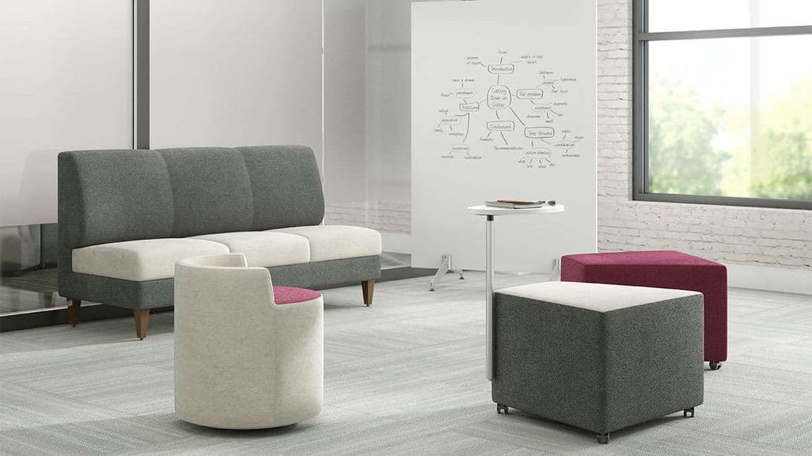 This Modular Collaborative Lounge seating system balances structure and freeform for congruent spaces that run the spectrum of playfulness to sophistication. Simply offering multiple levels of private and social settings empowers people to choose how they achieve their day. Available in Lounge Chairs, Loveseats, Sofas (Low Back and High Back options), Benches and modular components to customize a Collaborative Lounge Seating configuration to best fit your space.
