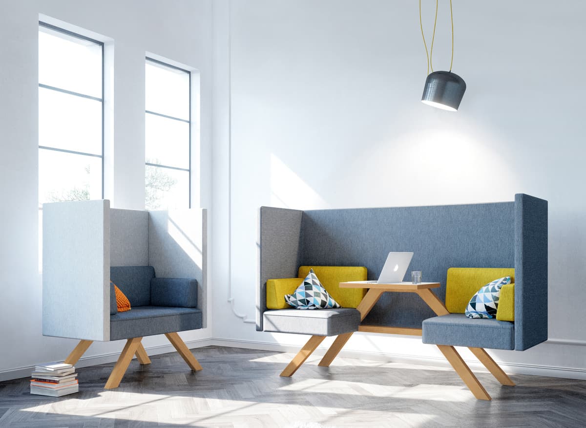Two-seat bench booths, two-seat lounge booths and single lounge models available with varying back and side panel options.