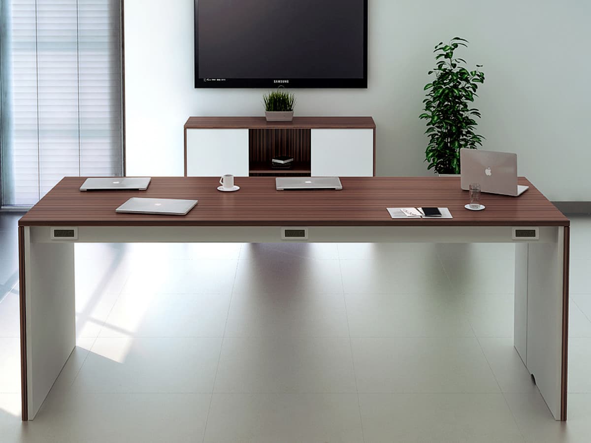 With the optional power apron you can easily provide power to one or both sides or your collaborative table. Each power unit has two standard 15amp plugs as well as two USB charging ports to easily charge your phone or device. Wire management will stay simple with the entire table powered by a single 15amp plug and routed through the removable wire access panel in one of the legs.