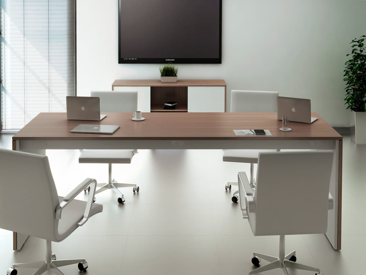 Perfect for solo or group work, relaxing or reading, chatting or dining, this commercial-grade collaboration table can be used for any number of reasons in any number of spaces. A steel beam understructure allows for truly impressive spans. With up to 144" between the slim outer leg panels, there is plenty of legroom.