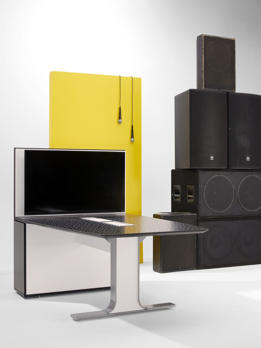 Media Mounting Panels allow for TVs or monitors to be attached for collaborative work and video conferencing. The back panels are fully finished, making them great for open concept spaces or glass partitioned meeting rooms.