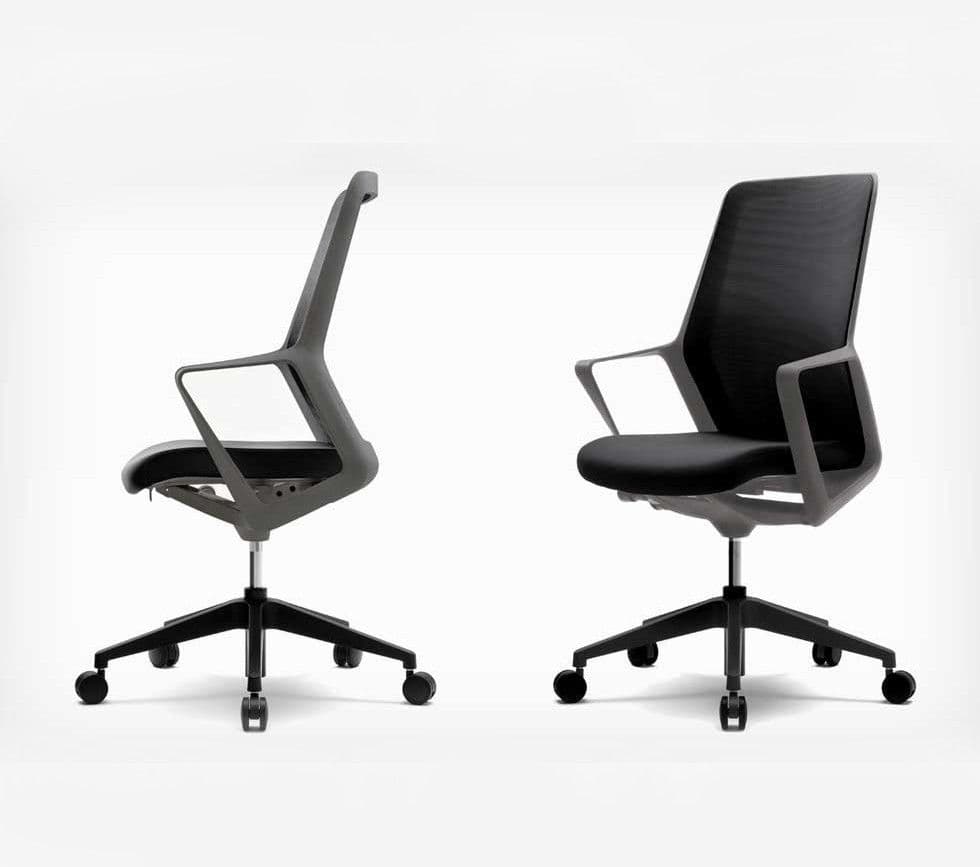 Sleek lines and architectural features distinguish the flowing design of this comfortable, modern conference chair. The arms' graceful, twisted structure optimizes strength for rigorous daily use. A cleanly integrated mechanism provides seat-and-back adjustments without disrupting the chair's thin profile.