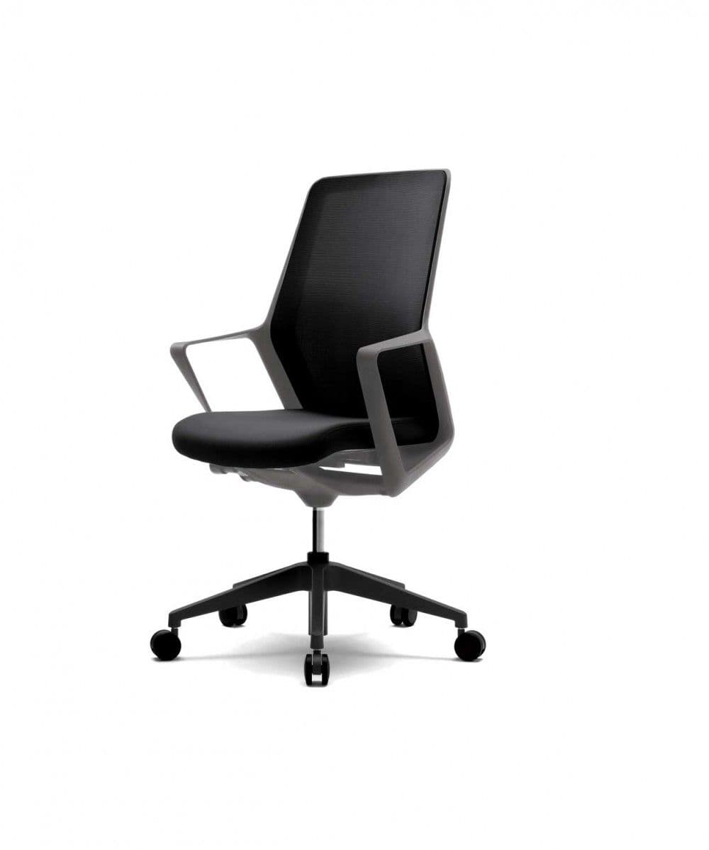 Sleek lines and architectural features distinguish the flowing design of this comfortable, modern conference chair. The arms' graceful, twisted structure optimizes strength for rigorous daily use. A cleanly integrated mechanism provides seat-and-back adjustments without disrupting the chair's thin profile.