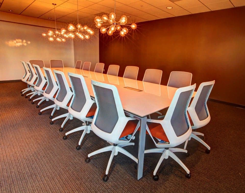 Sleek lines and architectural features distinguish the flowing design of this comfortable, modern conference chair. The arms' graceful, twisted structure optimizes strength for rigorous daily use. A cleanly integrated mechanism provides seat-and-back adjustments without disrupting the chair's thin profile.
