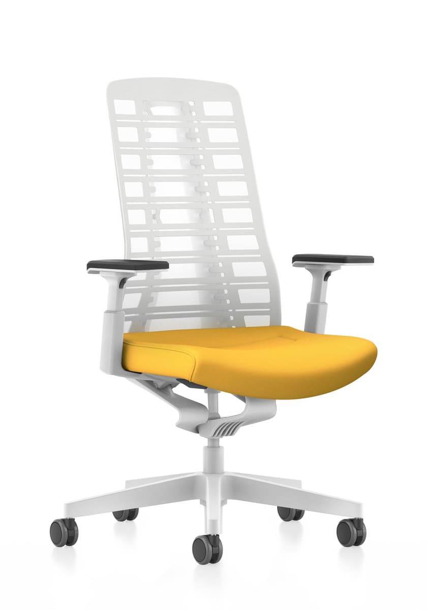 What makes this modern conference chair design so extraordinary? Its boldness to focus on what's most important. Its design is defined by one core component: The Smart Spring. It cuts a striking curve from the backrest down to the chair column. The transparent membranes in the backrest showcase the inner workings of the chair. This gives the chair an appearance that is defined by lightness and ease. The design of the chair column is just as clean-cut: The Smart Spring and chair column are available in either all-white or all-black. Thanks to the harmony in its color scheme, this comfortable conference chair blends into every space perfectly. A variety of mesh colors and a wide selection of upholstery materials and colors are available for an individual look. It impresses with its functional design. It makes a visual statement: Modern, clean-cut, functional.