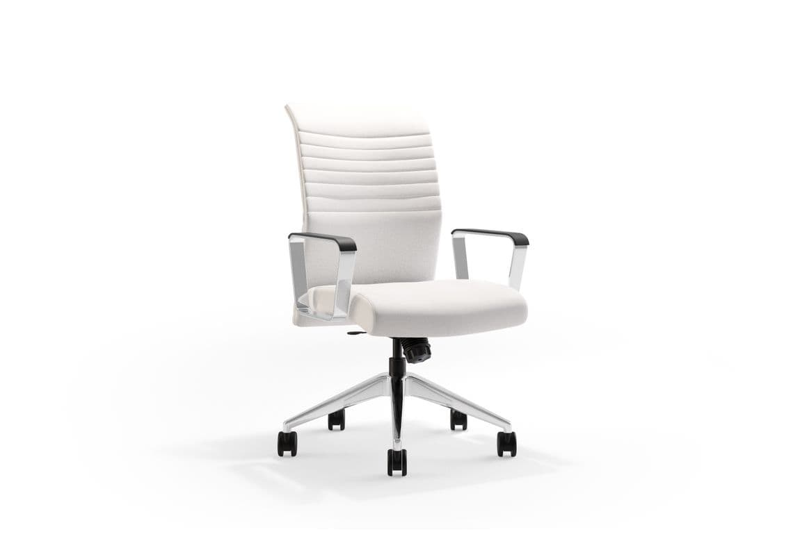 This modern, thin profile executive chair is a complete seating system that provides a comprehensive, consistent look throughout a floor plan. This series offers high and mid back options in both upholstered and mesh back finishes. Two upholstery styles (parallel and panel) create opportunity to custom design the right look. Mesh back offers exceptional comfort and support and a wide range of color options. Both back heights offer ratchet back function with excellent slim line profile that is designed for maximum support, comfort and performance. Control options on this series range from simple rock and lock to full ergonomic synchro function. Choose from a variety of different arm styles. This sleek, modern, yet utilitarian office chair lends itself to management, task and conference applications.