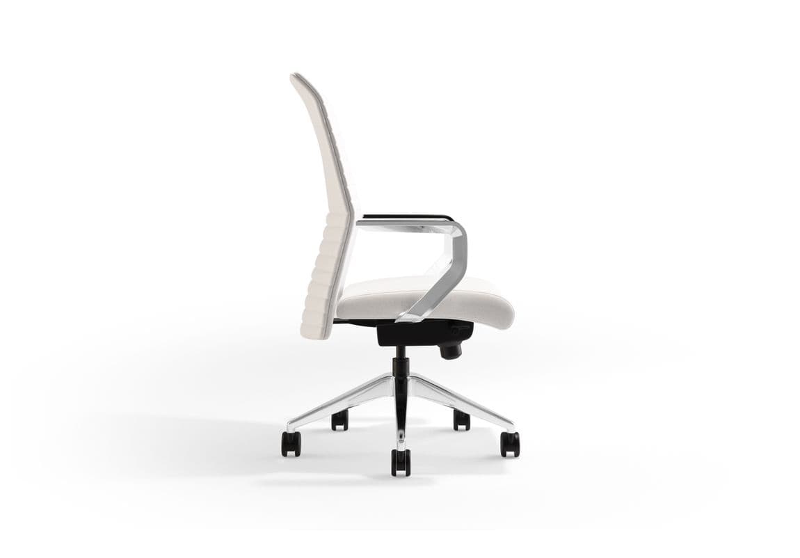 This modern, thin profile executive chair is a complete seating system that provides a comprehensive, consistent look throughout a floor plan. This series offers high and mid back options in both upholstered and mesh back finishes. Two upholstery styles (parallel and panel) create opportunity to custom design the right look. Mesh back offers exceptional comfort and support and a wide range of color options. Both back heights offer ratchet back function with excellent slim line profile that is designed for maximum support, comfort and performance. Control options on this series range from simple rock and lock to full ergonomic synchro function. Choose from a variety of different arm styles. This sleek, modern, yet utilitarian office chair lends itself to management, task and conference applications.