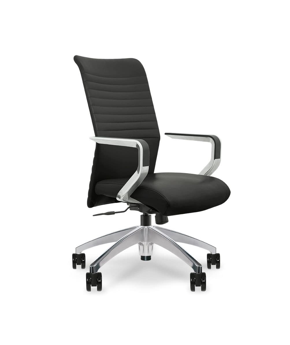 This modern, thin profile executive chair is a complete seating system that provides a comprehensive, consistent look throughout a floor plan. This series offers high and mid back options in both upholstered and mesh back finishes. Two upholstery styles (parallel and panel) create opportunity to custom design the right look. Mesh back offers exceptional comfort and support and a wide range of color options. Both back heights offer ratchet back function with excellent slim line profile that is designed for maximum support, comfort and performance. Control options on this series range from simple rock and lock to full ergonomic synchro function. Choose from a variety of different arm styles. This sleek, modern, yet utilitarian office chair lends itself to management, task and conference applications.