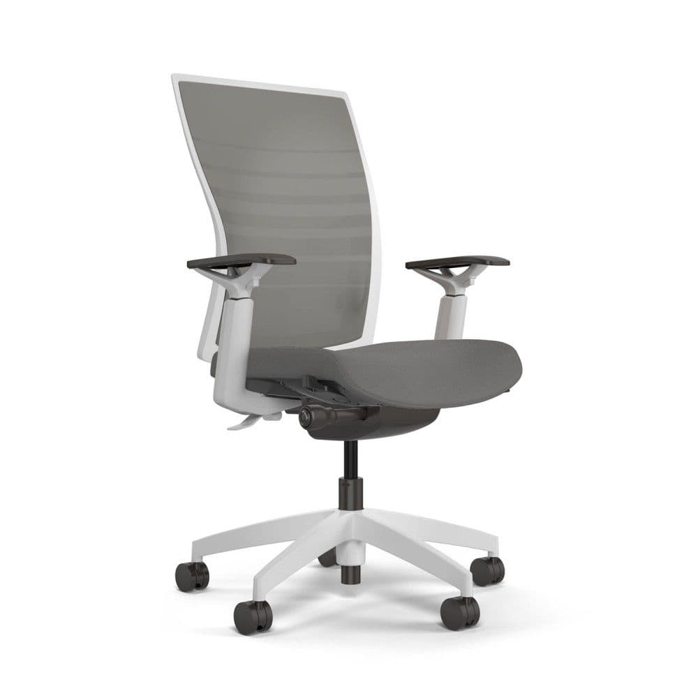 This modern, ergonomic executive chair delivers cutting edge design, unrivaled comfort, adjustable lumbar support and seat depth adjustability all at a great value. Some additional features include: comfortable and durable mesh back, waterfall seat, 300 lb. weight capacity, lifetime warranty – 12 years for 24/7 use. This ergonomic office chair is one of our top selling seating designs and is a great cross over between open office workstation, private office desk and conference table seating.