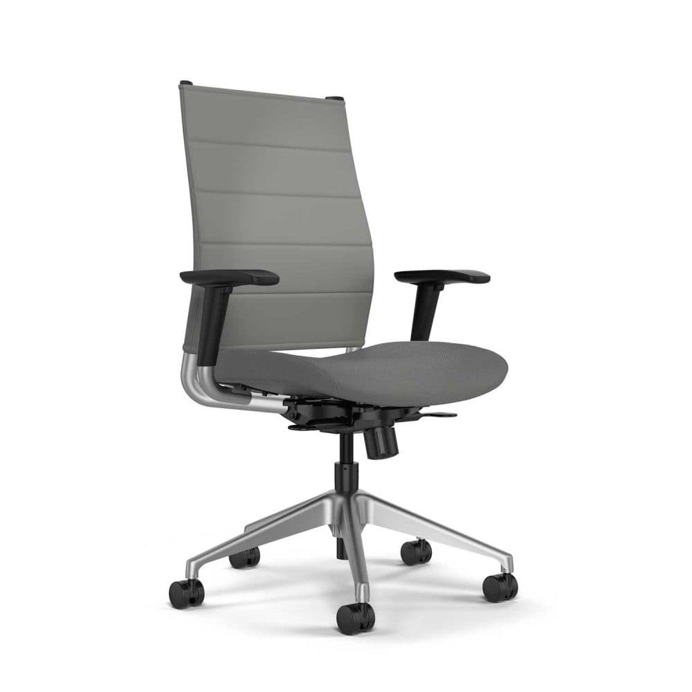 Highlighting the thin yet enticing seat back, this contemporary, ergonomic executive chair provides all the comfort, support and initial soft “pillow feel' of a 2' thick upholstered back in a ¼' thick contemporary design. This innovative and one of a kind seat back is durable, cleanable and available in both fabric and vinyl. A performance layer of monofilament mesh acts like two inches of foam when it's literally 1mm thick. The monofilament provides the lasting spring-back and support needed for long days of sitting. A comfort layer works with the chair's suspension to give the initial soft pillow feel but then sinks into the comfort curves of the mesh suspension. Along with a competitive price point, this exceptional executive chair is a win for any office setting.