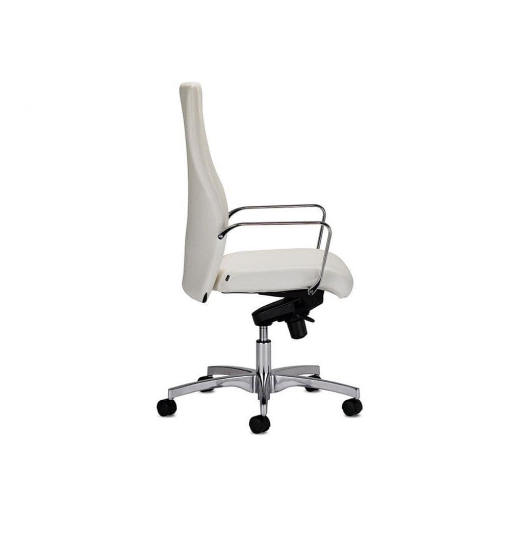 The true essence of this stunning executive chair is in the details. The curve of the backrest and large dimensions make it an all-time favorite as it adapts to all morphologies. This modern executive leather chair is customizable for every need: size, upholstery (mesh, upholstered or channeled), mechanisms, fixed or adjustable arms and so much more. Whichever upholstery or mechanisms chosen, this chair always proudly displays its signature chrome back frame. Own your professional space with this confident and dynamic chair.