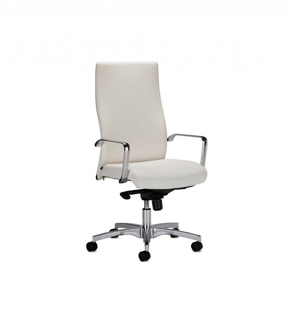 The true essence of this stunning executive chair is in the details. The curve of the backrest and large dimensions make it an all-time favorite as it adapts to all morphologies. This modern executive leather chair is customizable for every need: size, upholstery (mesh, upholstered or channeled), mechanisms, fixed or adjustable arms and so much more. Whichever upholstery or mechanisms chosen, this chair always proudly displays its signature chrome back frame. Own your professional space with this confident and dynamic chair.