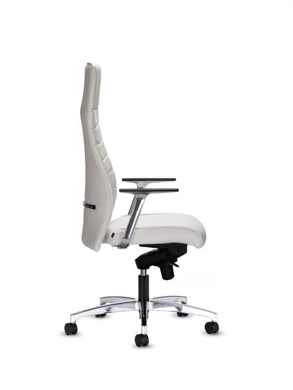 The true essence of this stunning executive chair is in the details. The curve of the backrest and large dimensions make it an all-time favorite as it adapts to all morphologies. This modern executive leather chair is customizable for every need: size, upholstery (mesh, upholstered or channeled), mechanisms, fixed or adjustable arms and so much more. Whichever upholstery or mechanisms chosen, this chair always proudly displays its signature chrome back frame. Own your professional space with this confident and dynamic chair.