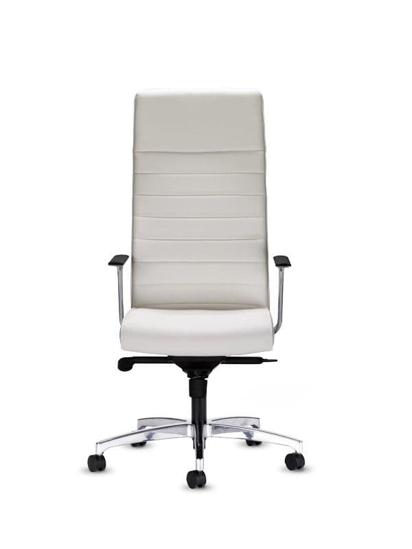 The true essence of this stunning executive chair is in the details. The curve of the backrest and large dimensions make it an all-time favorite as it adapts to all morphologies. This modern executive leather chair is customizable for every need: size, upholstery (mesh, upholstered or channeled), mechanisms, fixed or adjustable arms and so much more. Whichever upholstery or mechanisms chosen, this chair always proudly displays its signature chrome back frame. Own your professional space with this confident and dynamic chair.
