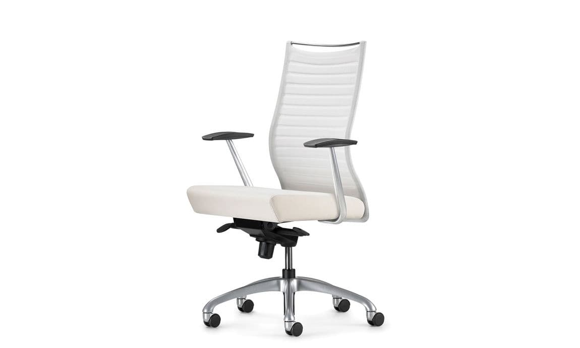 Modern, reliable and all-around versatile, this executive mesh back chair is a frontrunner for design and comfort. Available in many variations, from task, conference to executive chairs, this chair is practical for all applications. Its diverse knit back selections and multiple arm choices give this chair an array of customizable opportunities. All executive high back chairs also come with a sleek polished aluminum pull handle for easy maneuvering. This ergonomic chair meets the special needs of different executive environments creating a sense of privacy as well as striking a statement.