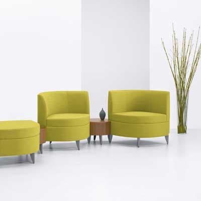 Lounge chair features leaf-inspired shape to enable seated comfort in any position. Accommodates up to 750 lbs. to satisfy bariatric requirements and is available with 360-degree rotating tablet for multi-functional purposes. Full and mid-size benches offered in a variety of sizes and can be specified individually or together with lounge chairs and connecting tables. Connecting tables available in five sizes to create straight or curvilinear arrangements. Offered in Maple, Walnut or White Oak veneer as well as laminate and Corian® selections. All standard and custom finishes available. Tables join together with all lounge and bench models as well as their child-size counterparts. All models feature four wood or metal legs as standard. Metal legs available in Polished Aluminum as well as Metallic Silver and Graphite powdercoat finishes. For more permanent connections, a ganging leg option is offered. Coordinating children’s collection available.