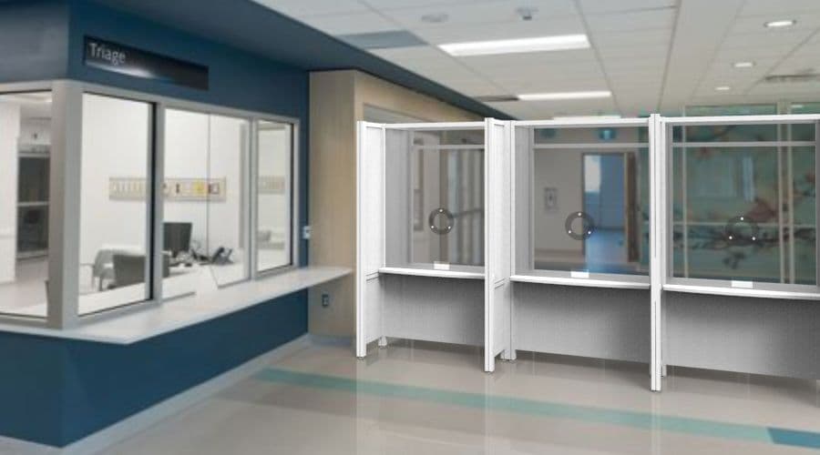 This medical admitting booth can be used in hospitals, grocery stores, and any other situation where folks have to interact, but need to be kept safe. Some applications for this product would be as a Healthcare Assessment Booth, COVID-19 Screening Booth, Admitting Booth, Registration Kiosk, Temporary Assessment Center, Coronavirus Screening Kiosk and could be useful as an Essential Business Solution for almost any type of company today and going forward.