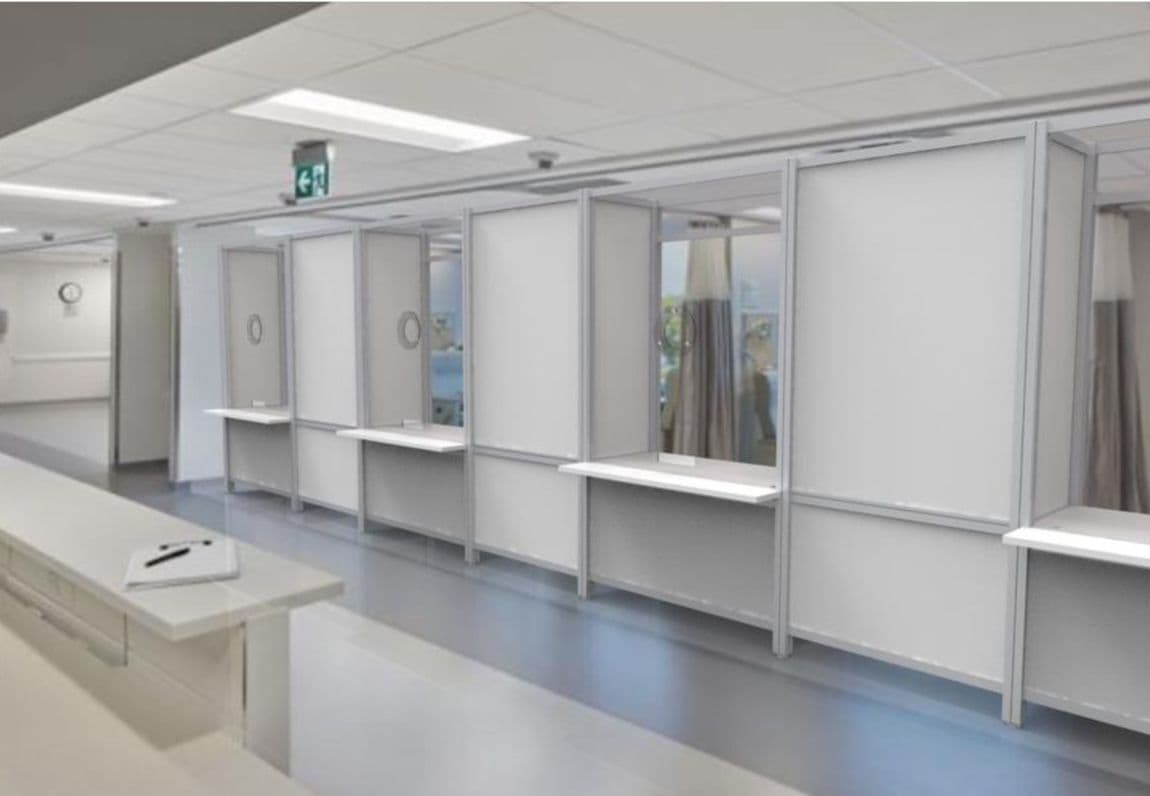 This medical admitting booth can be used in hospitals, grocery stores, and any other situation where folks have to interact, but need to be kept safe. Some applications for this product would be as a Healthcare Assessment Booth, COVID-19 Screening Booth, Admitting Booth, Registration Kiosk, Temporary Assessment Center, Coronavirus Screening Kiosk and could be useful as an Essential Business Solution for almost any type of company today and going forward.