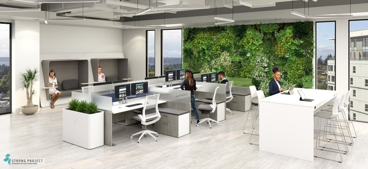 A hybrid working environment is a business model that blends remote and in-office work. A hybrid working environment has different spaces for different work purposes and interactions. Featured here are our innovative Height Adjustable Workstations paired with some of our Office Privacy Pods and Collaborative Meeting Table designs. Let us help you Create an atmosphere that drives productivity, fuels innovation, inspires creativity, and encourages community.