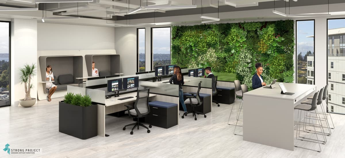 A hybrid working environment is a business model that blends remote and in-office work. A hybrid working environment has different spaces for different work purposes and interactions. Featured here are our innovative Height Adjustable Workstations paired with some of our Office Privacy Pods and Collaborative Meeting Table designs. Let us help you Create an atmosphere that drives productivity, fuels innovation, inspires creativity, and encourages community.