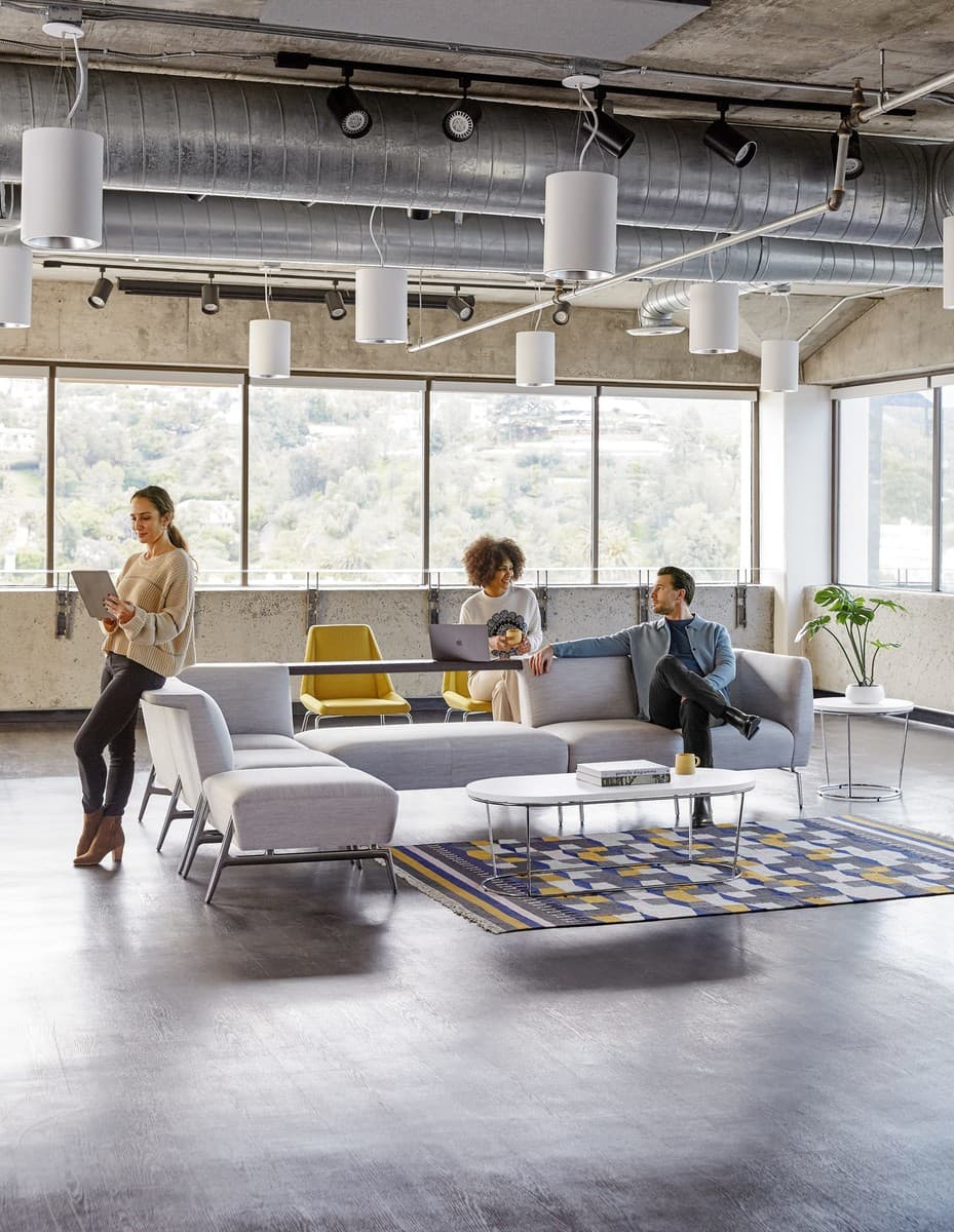 The interior seating area offers spacious comfort for collaboration and casual conversation while a ledge around the exterior perimeter serves as a work surface or perching rest. By allowing multiple and varied interactions at once, it provides something for everyone and becomes the gathering hub that’s worth seeking out.