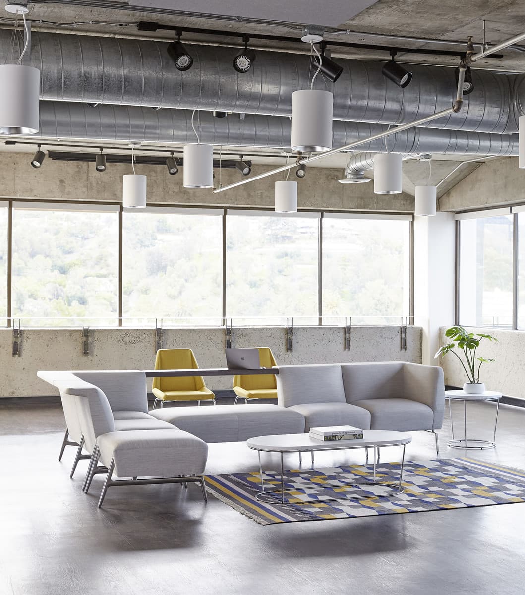 The interior seating area offers spacious comfort for collaboration and casual conversation while a ledge around the exterior perimeter serves as a work surface or perching rest. By allowing multiple and varied interactions at once, it provides something for everyone and becomes the gathering hub that’s worth seeking out.