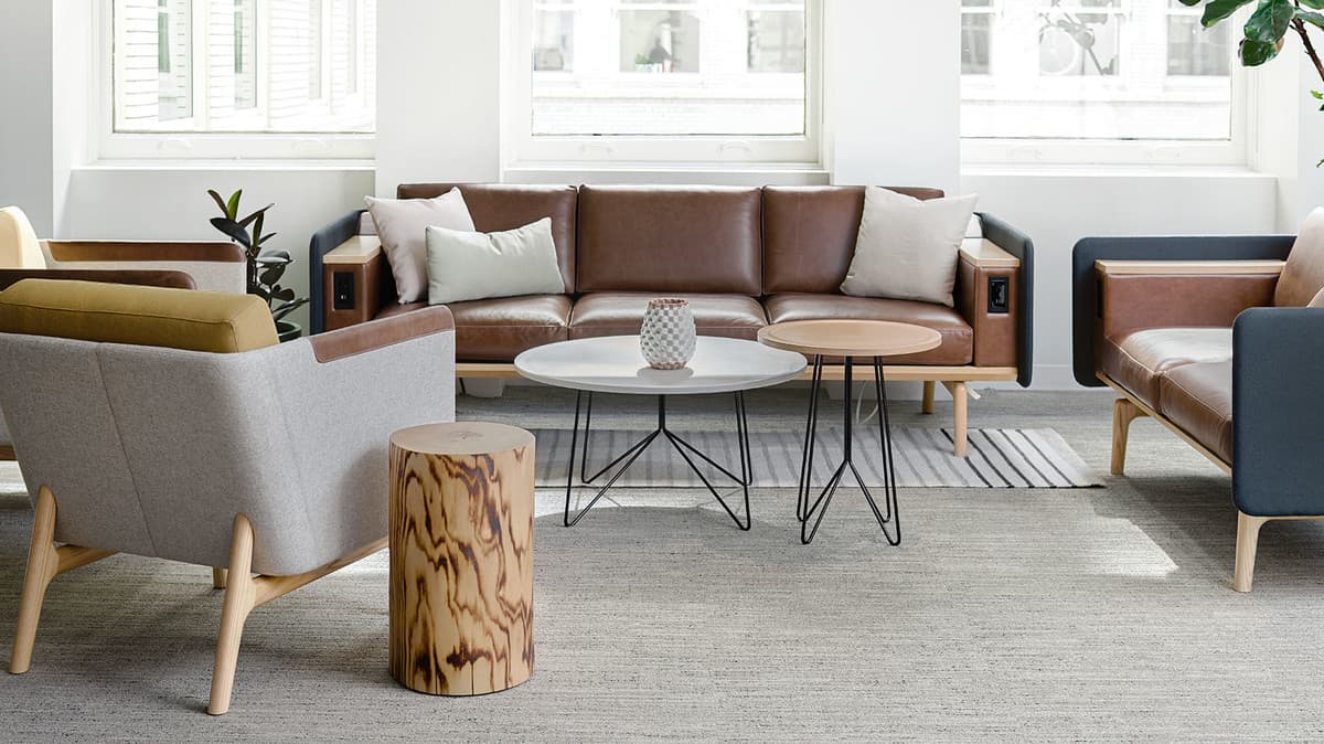 Each detail of the design works together to create a pocket of people to gather or spend time alone, from its rounded corners to the precise thickness of the sound-dampening felt.